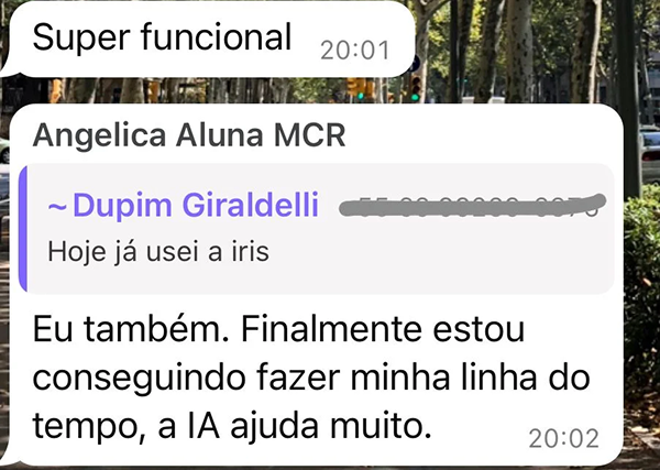"Super funcional. Fazer minha linha do tempo pela IA ajuda muito."