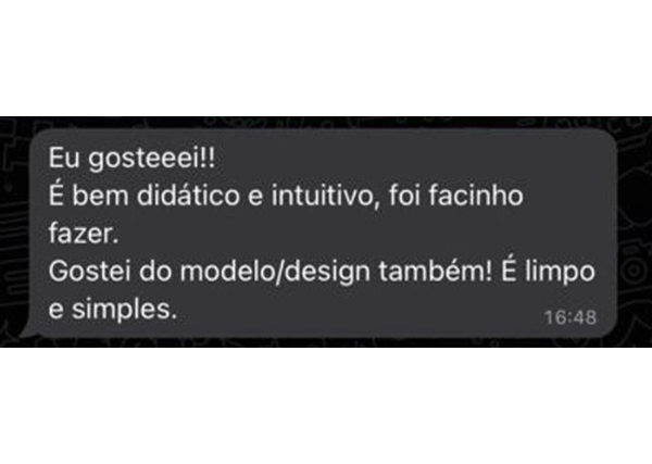 "É bem didático e intuitivo, foi facinho fazer. Gostei do design também!"