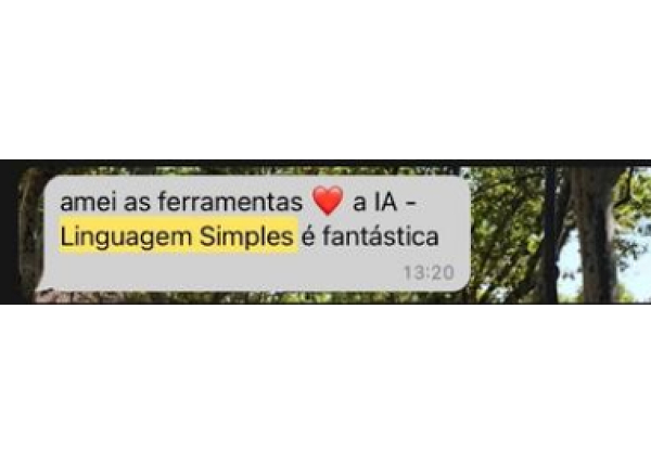 "Amei as ferramentas. A IA de Linguagem Simples é fantástica."