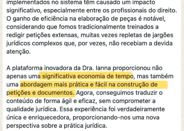 "Significativa economia de tempo, e também uma abordagem mais prática e fácil na construção de petições e documentos."